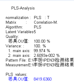 实验结论:德国 AIRSENSE 公司的PEN3 型嗅辨仪在这次的环境恶臭气体的分析检测中,可以说达到了很好的试验效果。采用EDU 吸附浓缩热解析装置联用,效果也是极其明显。并且通过参照和建立国家标准相对应的模板文件,可对环境空气进行监测,能够直接测定出其恶臭强度OU 值。具体归纳如下: