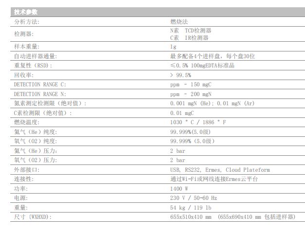 碳素和氮素分析,碳素和氮素的检测限分别为0.01mg C和 0.001mgN,RSD% <0.5%(EDTA),可以分析低至200mg的样本量,也可以分析1g的样本量,通过小的耗材消耗即可获得理想的效果。