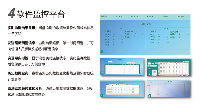 5. 开放通讯协议,可以同第三方监测平台软件进行数据对接和显示;